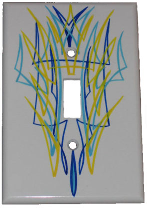 Hand Pinstriped Wall Switch Plate These plates are hand painted and signed. Each plate is one of a kind. Looks great in any garage , shop or den Great gift idea ! Available in white, beige or black The art work will vary, but cool is the rule. |