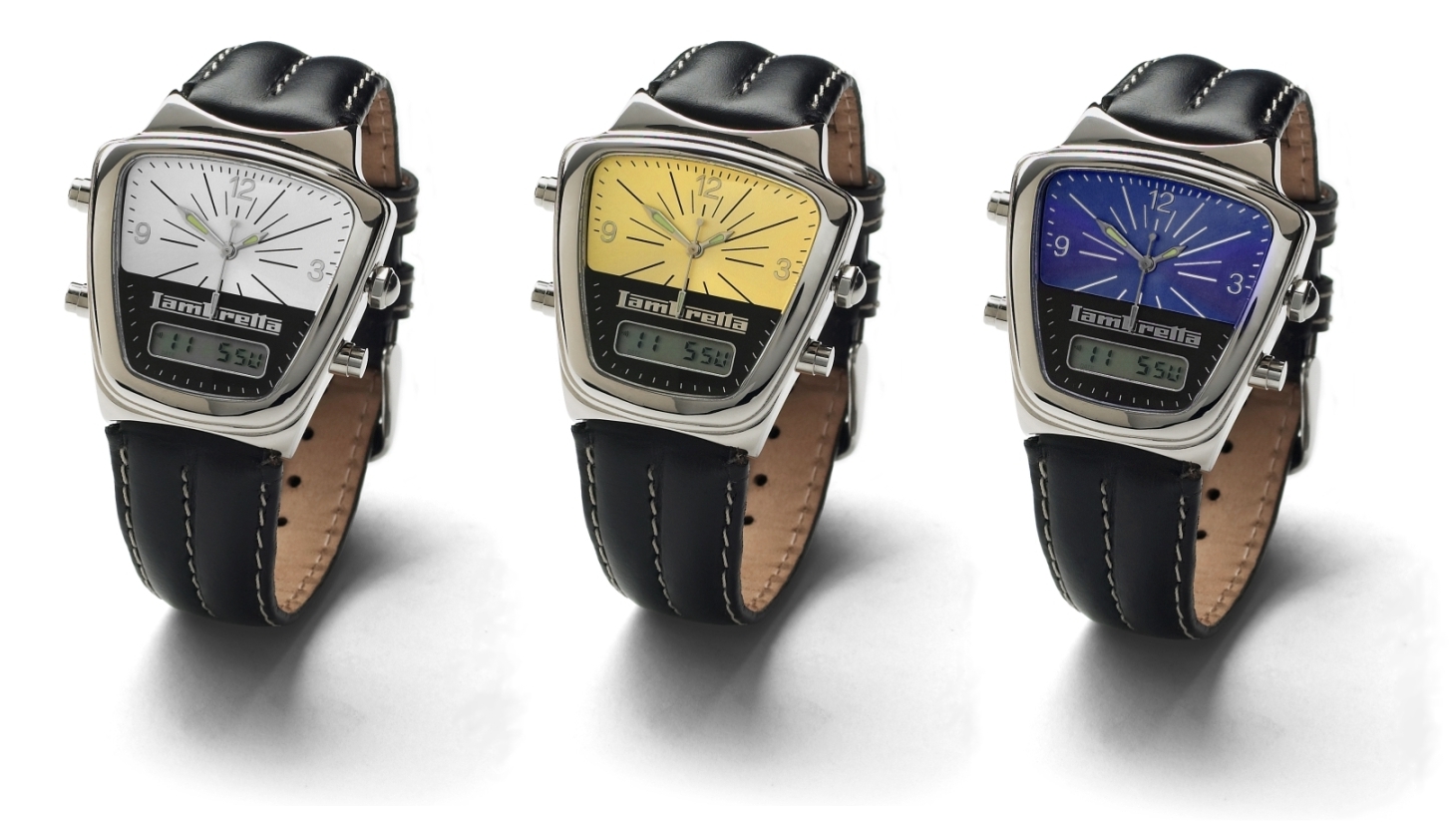 Clearly inspired by the speedometer used on an SX150. Integrated digital chronograph with timekeeping, day/date, dual time and alarm, and a standard 3 hand movement. Fitted with a bold genuine leather strap for that retro feeling. * Large * 5ATM * Genuine Leather Strap * Solid Stainless Steel Case $195.00 US |